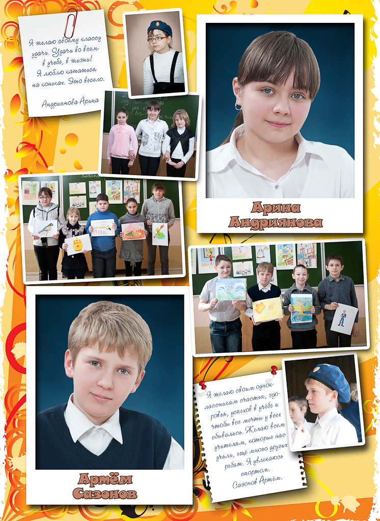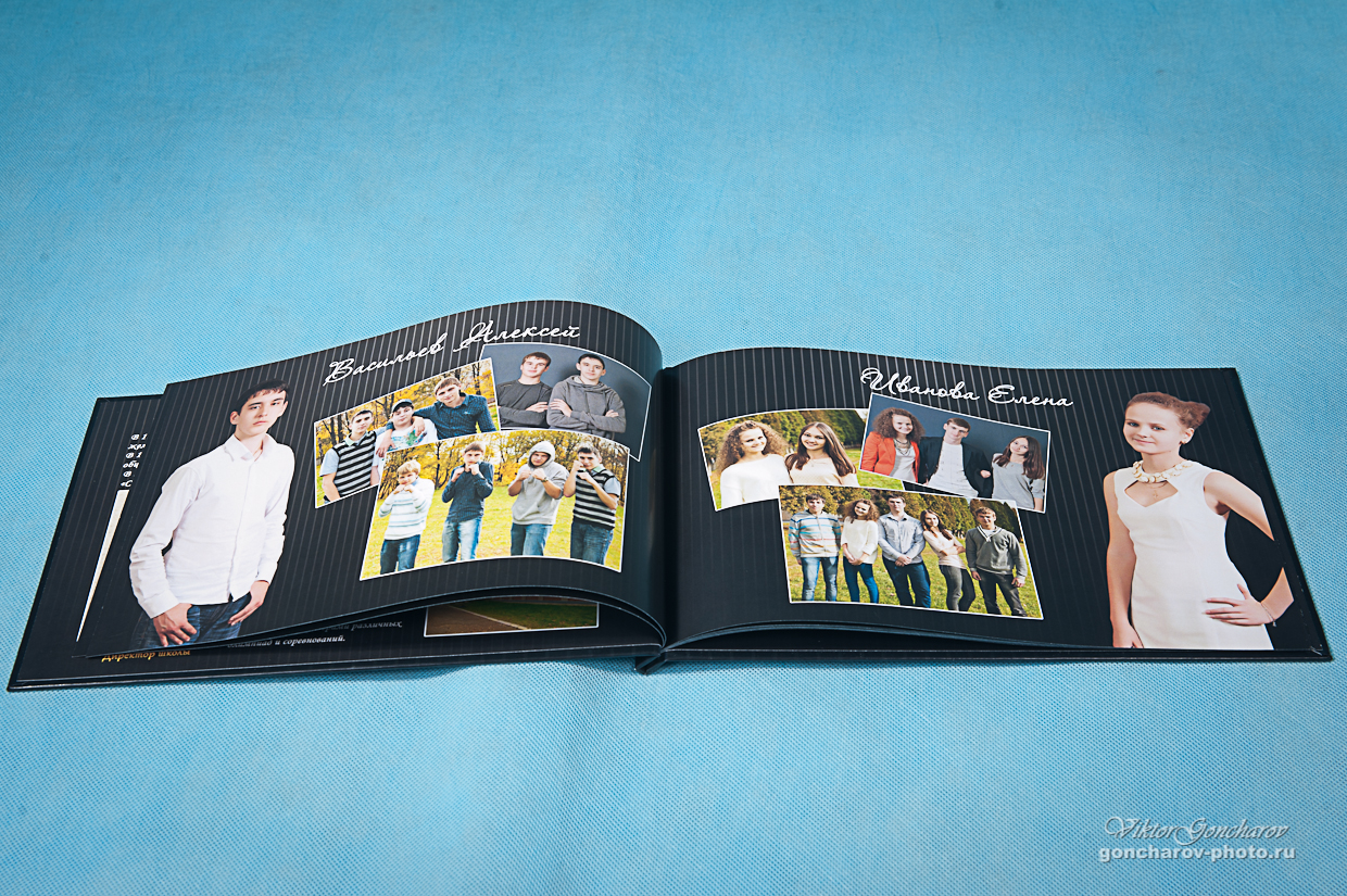 Каждый макет для выпускного фотоальбома, не смотря на наличие макетов, наш дизайнер придумывает практически заново, используя фотографии выпускников в каждом конкретном случае.